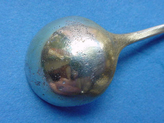 | 1530-25. Antique American Silver Mustard Spoon in the 'Wavy Fiddle' pattern marked by A. Stowell of Boson MA, c.1850-1860. | 5.12" long, 0.94" bowl width. No mono. | $ 30. | |