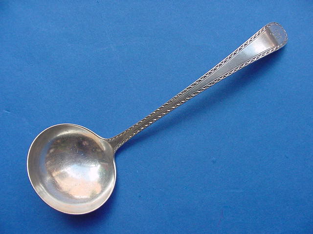 Ladles can often be difficult to categorize and as a result are being split into two groupings for this page. The large ladles will be placed together as Soup, Oyster & Punch Ladles with the smaller ones as Gravy & Sauce Ladles; within each category the listings will be alphabetical by maker/retailer. The soup ladles are the largest, the oyster ladles are somewhat smaller and indeed might actually have been made as small soup ladles in some cases, and the punch ladles are described as such due to either handle or bowl decoration. The gravy and sauce ladles are arbitrarily differentiated by size (gravy presumably larger); if we know that the manufacturer designated the particular ladle as a mayonnaise, cream, horseradish or something else we will list it that way. A fancy bowl might be found on any of these ladles; also note that a small oyster ladle can be very close in size to a large gravy ladle. We view many of these descriptions as subjective since in most instances we cannot know the original use intended by the maker and customer.