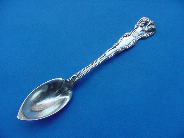 1405-31. 6 Reed & Barton 'Majestic' Dessert Spoons (1894) retailed by W. M. Purington of Rockland ME. No mono. | 7.06" long, 1.5" bowl width, 9.2 troy oz. total. | $ 420. |
