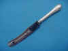 1450-14. 6 Antique American Silver Dessert Knives with flat handles in an unknown pattern; marked by D. C. Jaccard & Co. of St. Louis MO but possibly a Wendt / Beiderhase product, c.1864-1875. We also have a single available (1450-15) @ $55. | 7.88" long, 0.75" blade width, 8.2 troy oz. Mono erased. See article by Diana Cramer in Silver Magazine July/August 1992 p.23 as a possible Wendt design. | $ 330. |