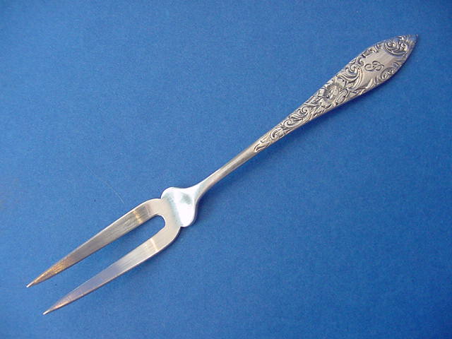 If you are interested in acquiring a set of matching flatware please check our Flatware Services page; for various flatware servers check out the following six pages: Serving Spoons (those with a bowl), Serving Forks (those with tines), Serving Knives (those with blades), Serving Sets (combinations of servers or serving and place pieces), Ladles (bowls again!), and Miscellaneous Servers (everything else!). Identifying the original use of a server can sometimes be difficult, especially if one does not have the manufacturer's catalog. As a consequence we may have just what you need listed under a completely different category than what you might expect. Thus it is hoped that having a separate page for these six broad groupings of servers will enable you to search through somewhat similar categories that may more quickly yield what you are looking for. These sections will include post-Civil War American Servers and foreign examples of any age. There is a separate archival page devoted to Baltimore Repoussι Servers if that is your only interest. For Civil War and earlier American examples please check out Coin Silver Servers, Coin Silver Ladles, and Coin Silver Sugar Tongs.