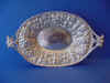 1470-44. American Silver Bon Bon Dish of shaped oval form, the sides and rims chased with floral repoussé decoration inside a cast and applied floral and foliate scroll edge (#95); made by the Stieff Co. of Baltimore MD, c.1905-1920. No mono. | 1.0" high, 7.38" long, 5.88" wide, 5.2 troy oz. | SOLD |