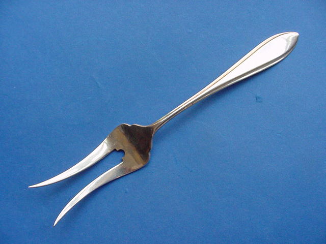 1560-05. Whiting 'Louis XV' Long Lemon Fork (1891) with two barbed tines. No mono. | 6.18" long, 0.55 troy oz. | $ 35. |